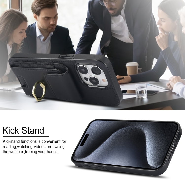 Funda Elástica para iPhone 14 Pro Max con Soporte para Anillo y Bolsa para Tarjetas (Negro)