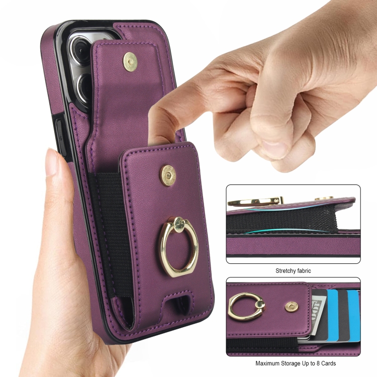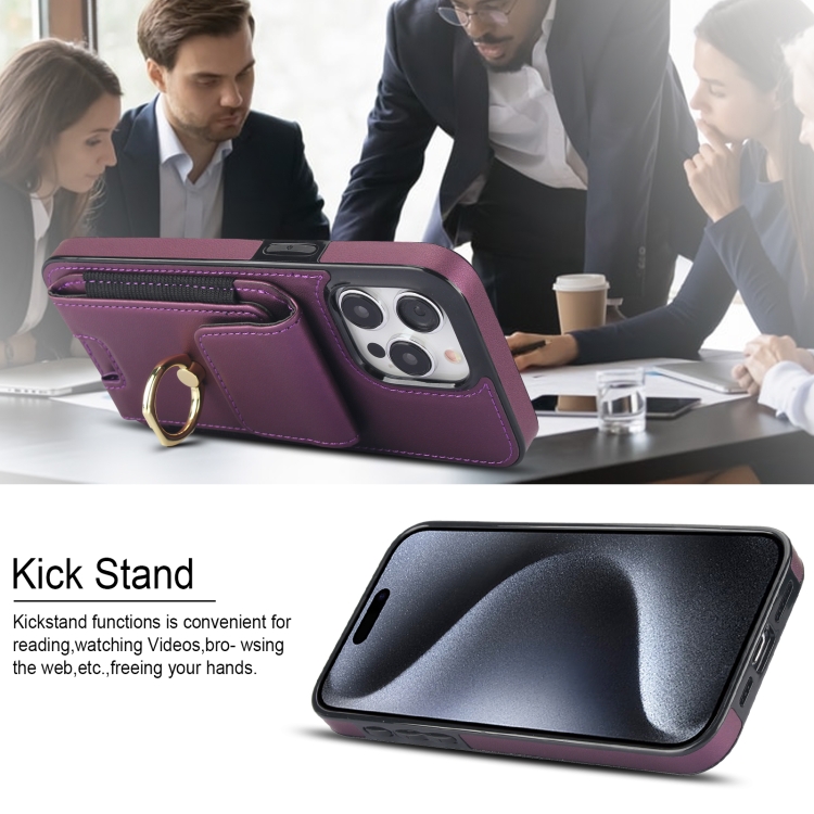 Funda para Teléfono iPhone 14 Pro Max Elástica con Soporte para Anillo y Bolsa para Tarjetas (Púrpura)