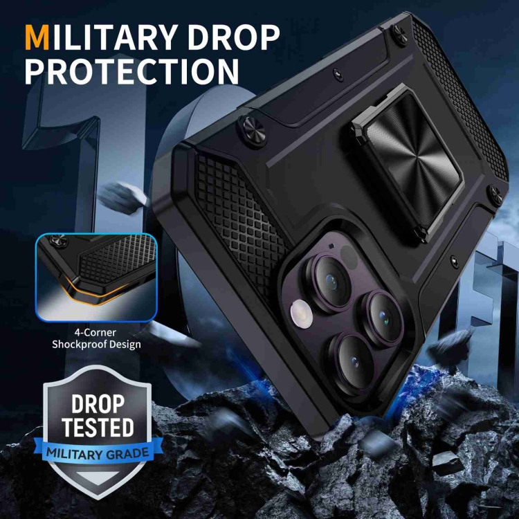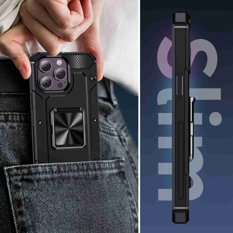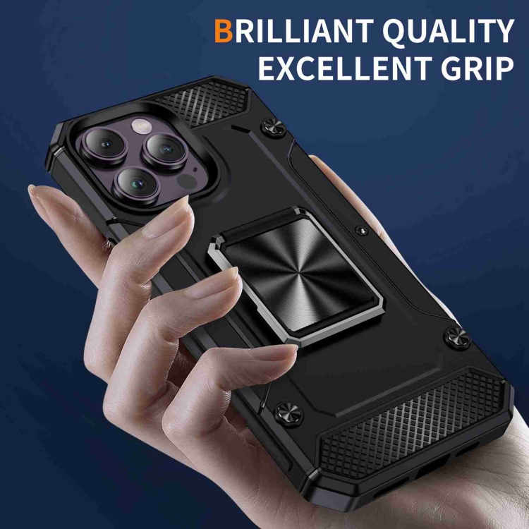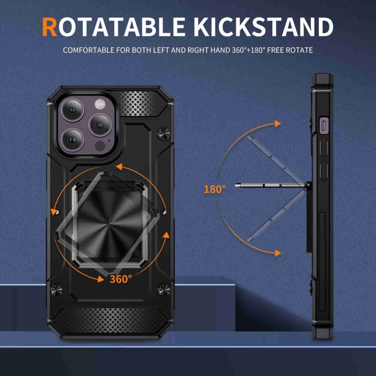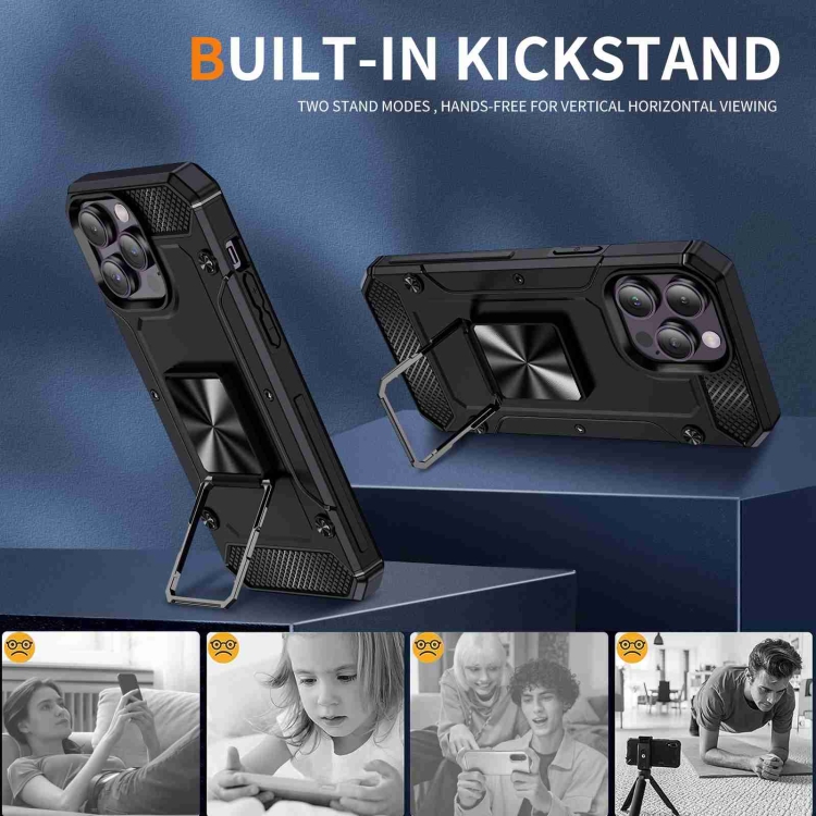 Funda para Teléfono iPhone 14 Pro Max con Soporte de Metal a Prueba de Golpes (Negro)