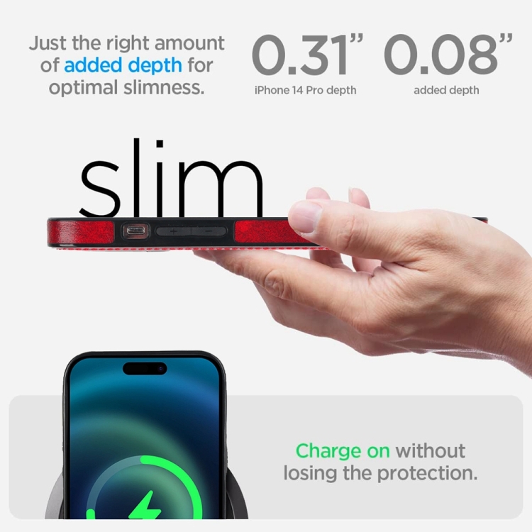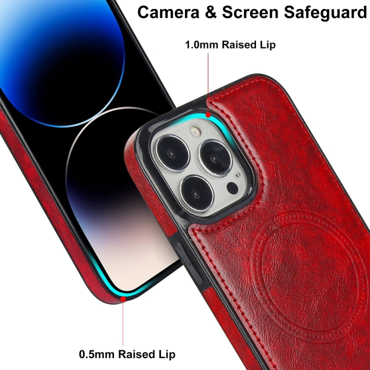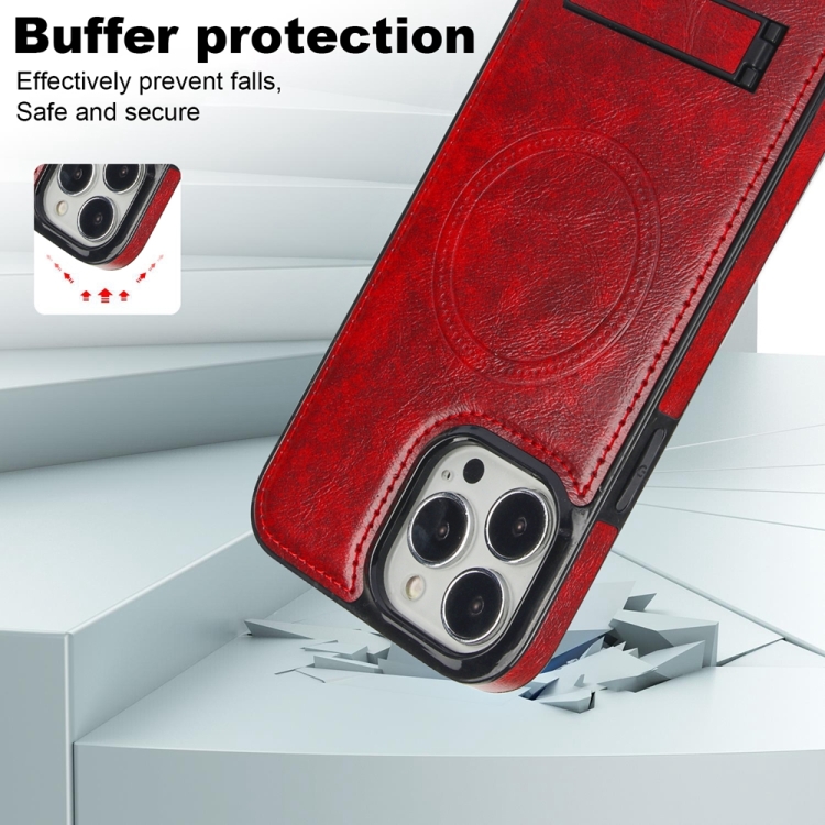 Funda para Teléfono iPhone 14 Pro Max Magsafe Soporte Invisible Cuero Retro (Rojo)