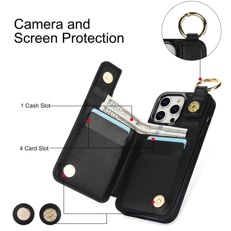 Funda para Teléfono iPhone 14 Pro Max Litchi Texture Cremallera Doble Hebilla con Bolsa para Tarjetas (Negro)