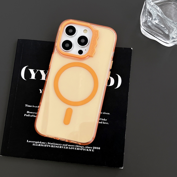 Estuche híbrido para iPhone 14 Pro Max Magsafe PC y TPU Colorful Wavy Circle (Naranja)