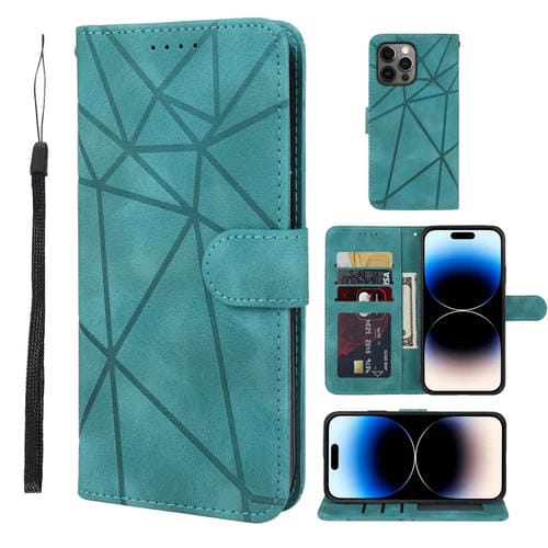 Funda para iPhone 14 Pro Max Skin Feel Cuero Líneas Geométricas (Verde)