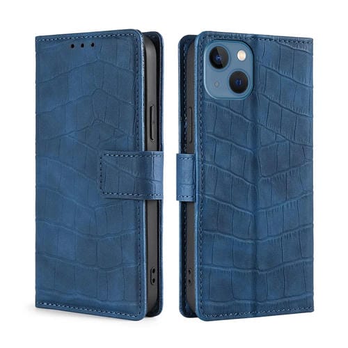 Funda para iPhone 14 Skin Feel Cocodrilo Cierre Magnético Cuero (Azul)