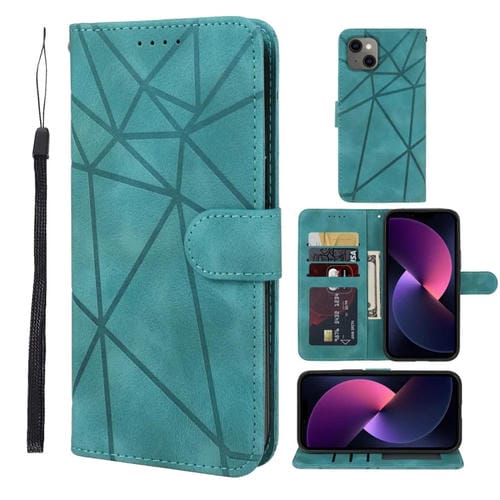 Funda para teléfono iPhone 14 Skin Feel Cuero con Líneas Geométricas (Verde)