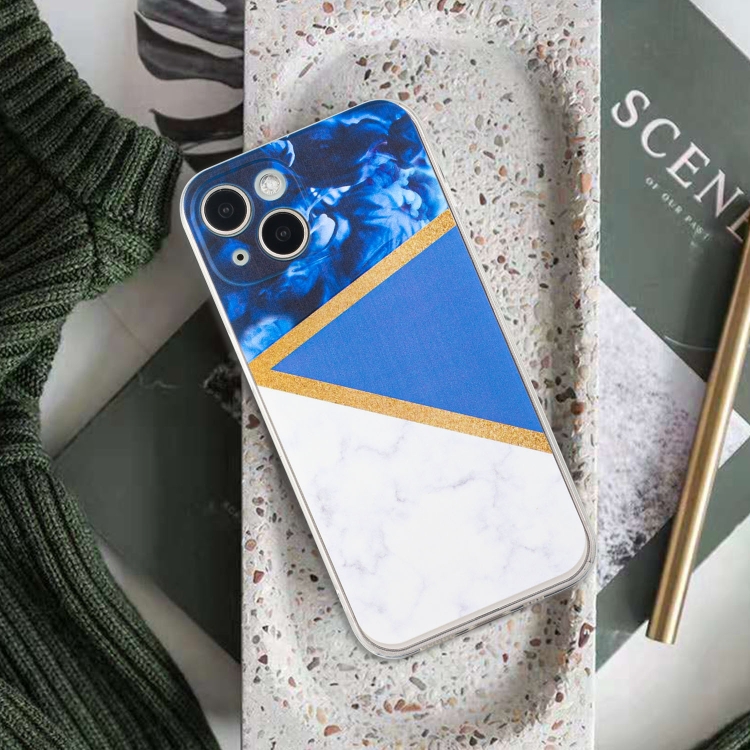Funda TPU para iPhone 14 Stitching Marble Protección Azul Oscuro