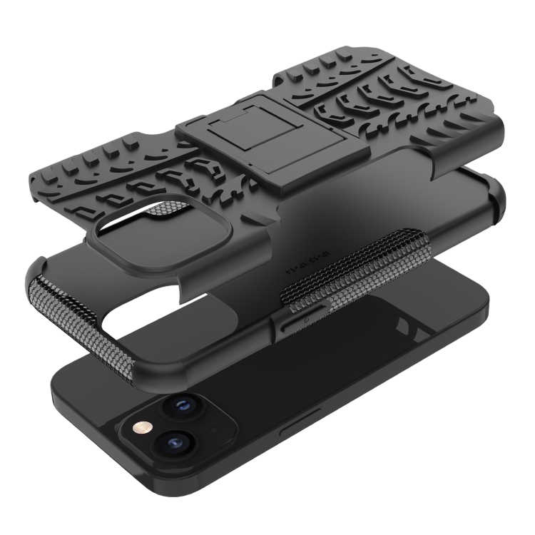 Funda para Teléfono iPhone 14 Tire Texture TPU + PC con Soporte (Negro)