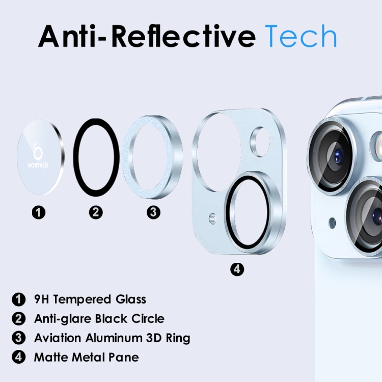 Película de Lente Trasera para iPhone 15/15 Plus Northjo Vidrio Templado Integrada Esmerilada (Azul)