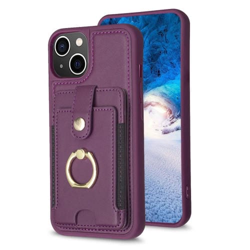 For iPhone 15 BF27 Phone Case with Metal Ring Card Holder (Dark Purple)