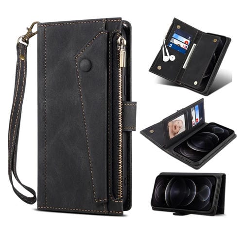 Funda para iPhone 15 Eseble Retro Frosted Rfid Flip de Cuero (Negro)
