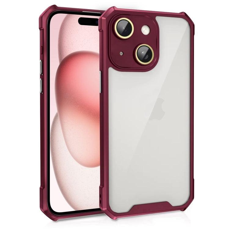 For iPhone 15 Shockproof Acrylic Phone Case with Glass Lens Film (Wine Red)