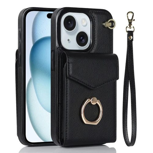 Estuche para Teléfono iPhone 15 con Ranura para Tarjeta Rfid y Soporte para Anillo (Negro)