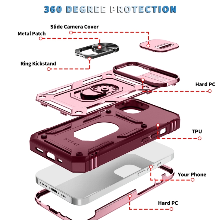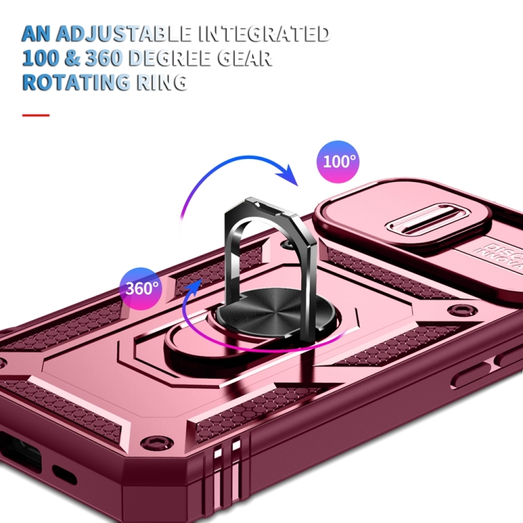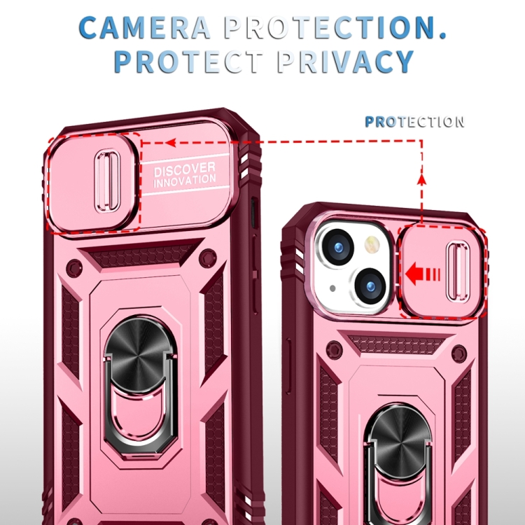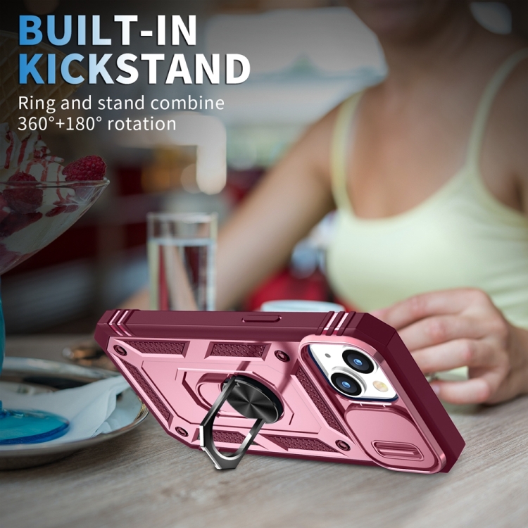 Estuche para teléfono iPhone 15 con soporte deslizante Camshield (Rosa + Rojo Rosa)