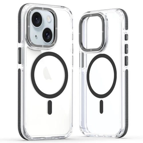 For iPhone 15 Dual Color Clear Acrylic Hybrid MagSafe Phone Case (Black)