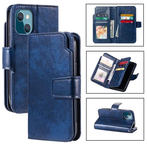 Funda para Teléfono iPhone 15 Cuero con Billetera Triple 9 Tarjetas (Azul)