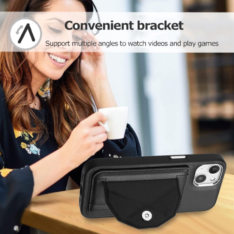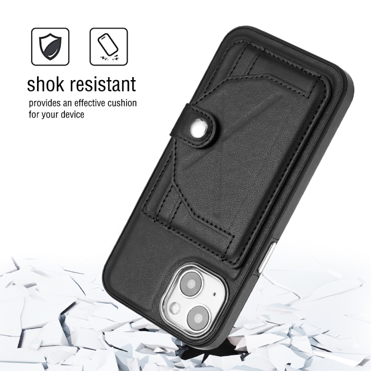 For iPhone 15 Shockproof Leather Phone Case with Card Holder (Black)