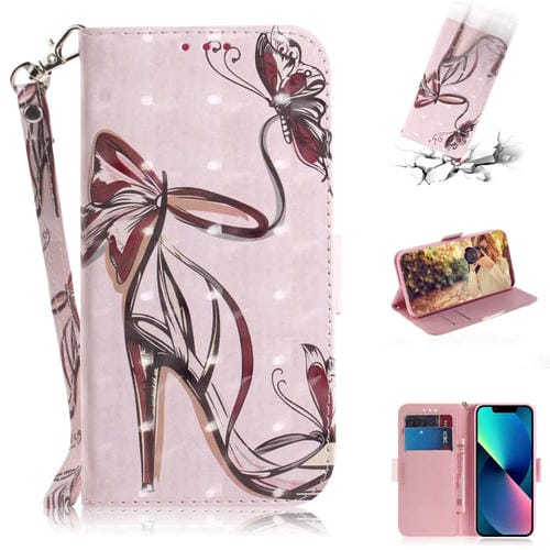 Funda de Teléfono iPhone 15 Cuero con Tapa Horizontal Color 3D (Tacón Alto de Mariposa)