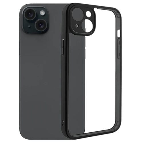 Funda de Teléfono para iPhone 15 PC Transparente con Poro Fino de TPU Esmerilado (Negro)