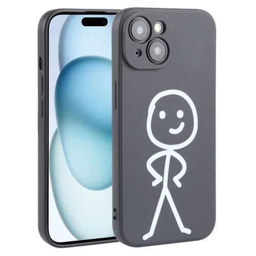 Funda de Teléfono iPhone 15 Silicona Líquida Patrón Stickman (Negro)