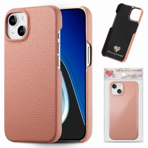 For iPhone 15 Phone Case with Litchi Oil Edge Leather Back (Pink)