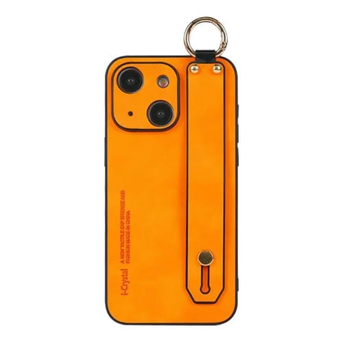 Funda para Teléfono iPhone 15 con Soporte para Pulsera de Piel de Cordero (Naranja)