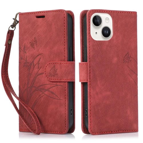 For iPhone 15 Orchid Butterfly Embossed Leather Phone Case (Red)