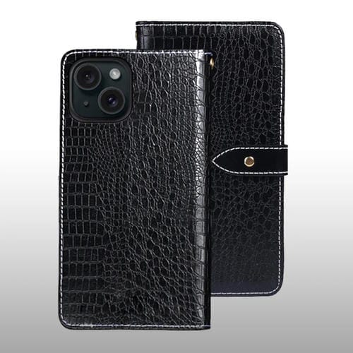 Funda para Teléfono Idewei iPhone 15 Cuero Textura de Cocodrilo (Negro)