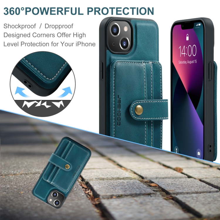 Funda para Teléfono Jeehood iPhone 15 de PU Magnética Antirrobo con Bloqueo RFID (Azul)