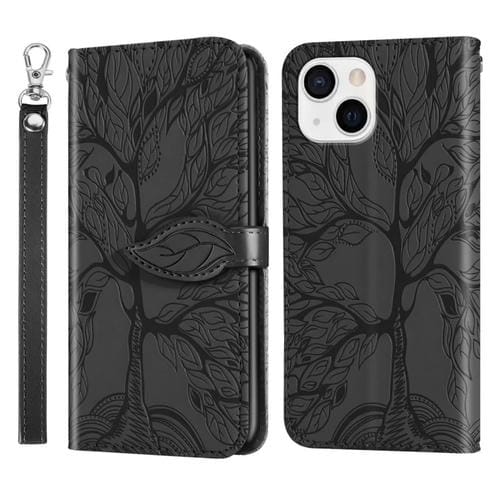 Funda de Cuero para iPhone 15 Life Tree Embossing Pattern para Teléfono (Negro)