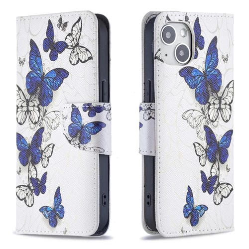 Funda Flip de Cuero para iPhone 15 Patrón de Dibujo Coloreado (Mariposas)