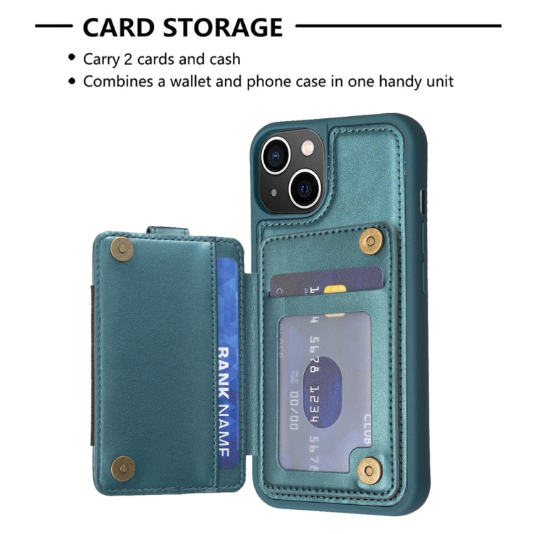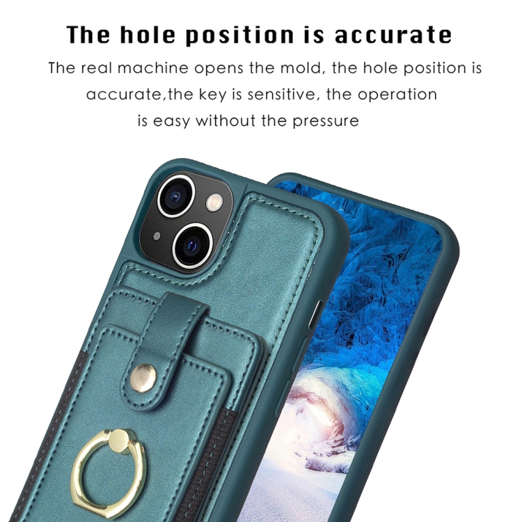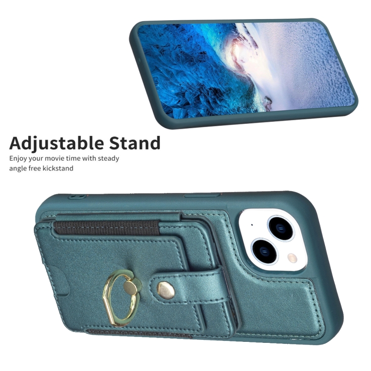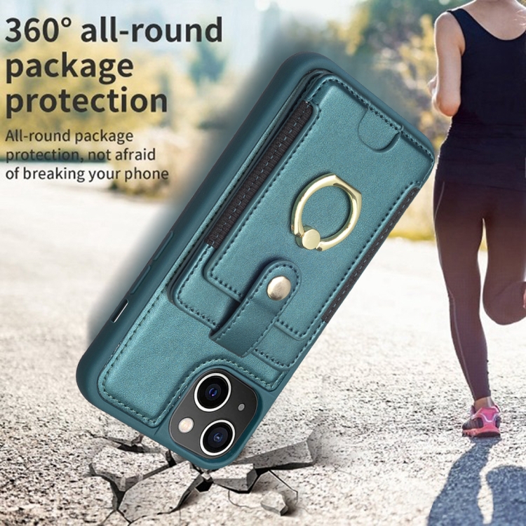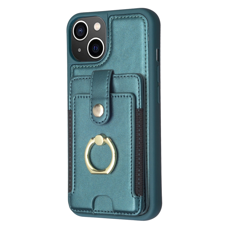 Funda para Teléfono iPhone 15 Plus Bf27 con Soporte para Tarjeta y Anillo de Metal (Verde)