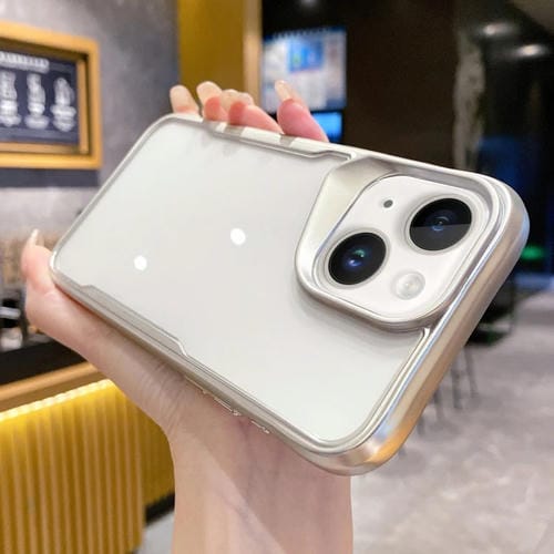 Caja híbrida para teléfono iPhone 15 Plus con marco de TPU galvanizado (Plateado)