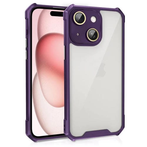 Estuche acrílico para iPhone 15 Plus a prueba de golpes con Película de vidrio para Lentes (Púrpura)