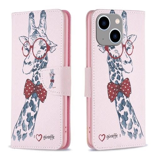 Estuche para teléfono iPhone 15 Plus Cuero patrón dibujo coloreado (Jirafa)