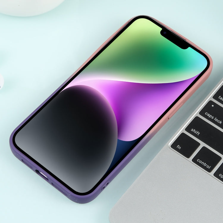 Funda de teléfono iPhone 15 Plus silicona estrellada degradada con Película de Lente (Rosa Púrpura)
