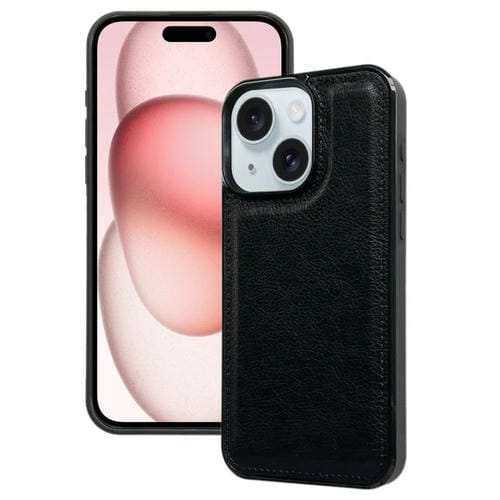 For iPhone 15 Plus Phone Case with Cowhide Texture Back Cover (Black)