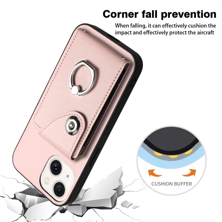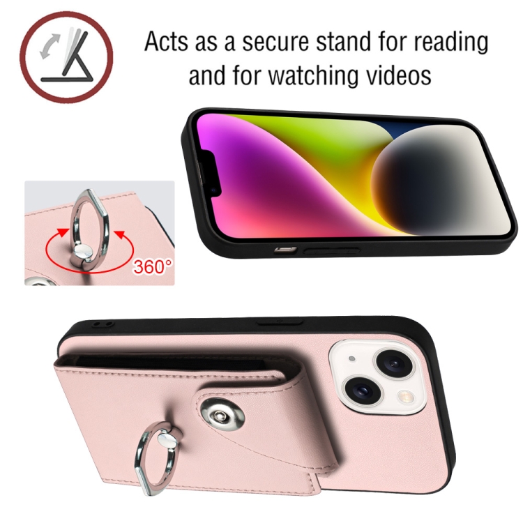 Funda para Teléfono iPhone 15 Plus con Soporte para Anillo y Bolsa para Tarjeta (Rosa)