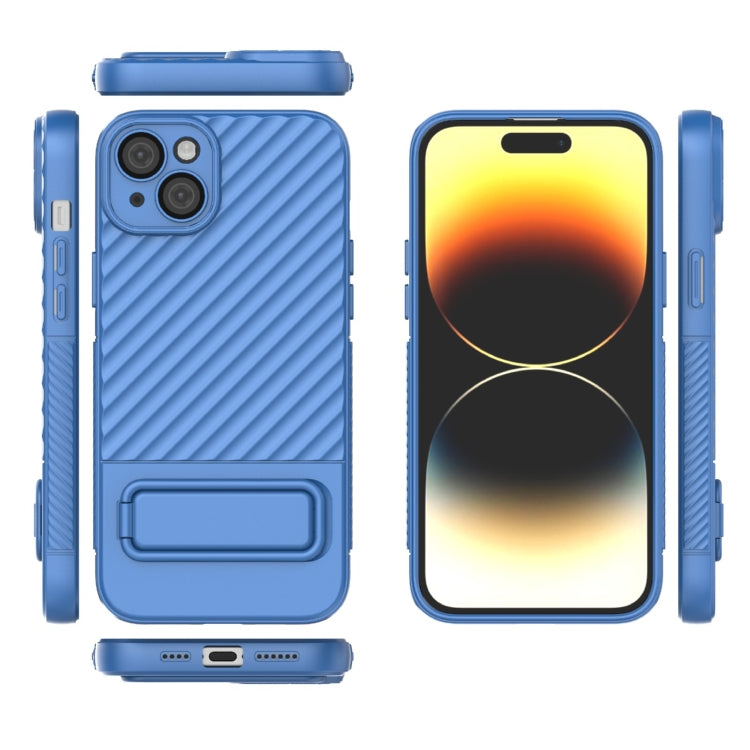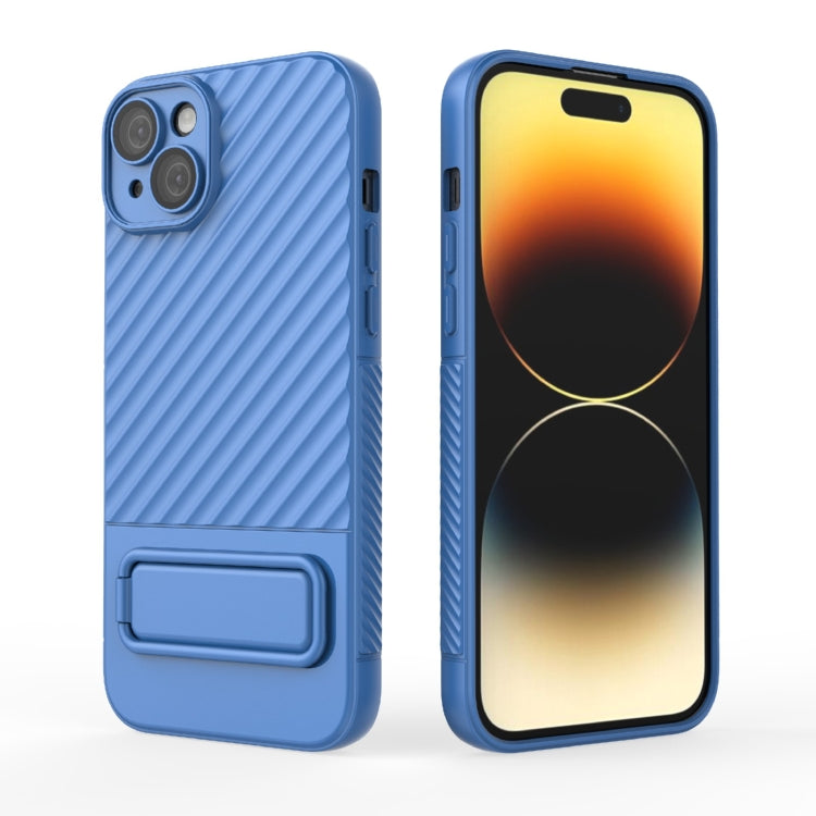 For iPhone 15 Plus Wave Texture TPU Phone Case with Lens Film (Blue)