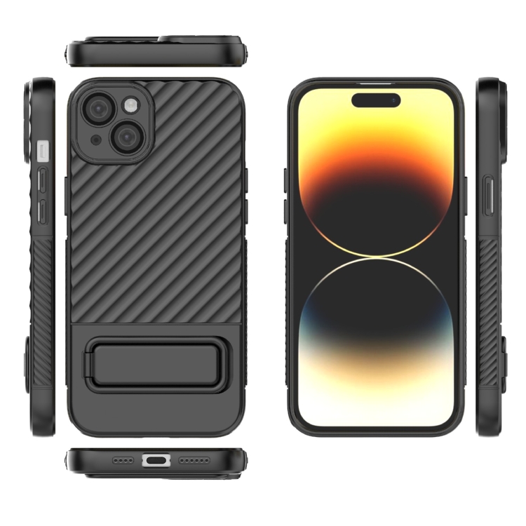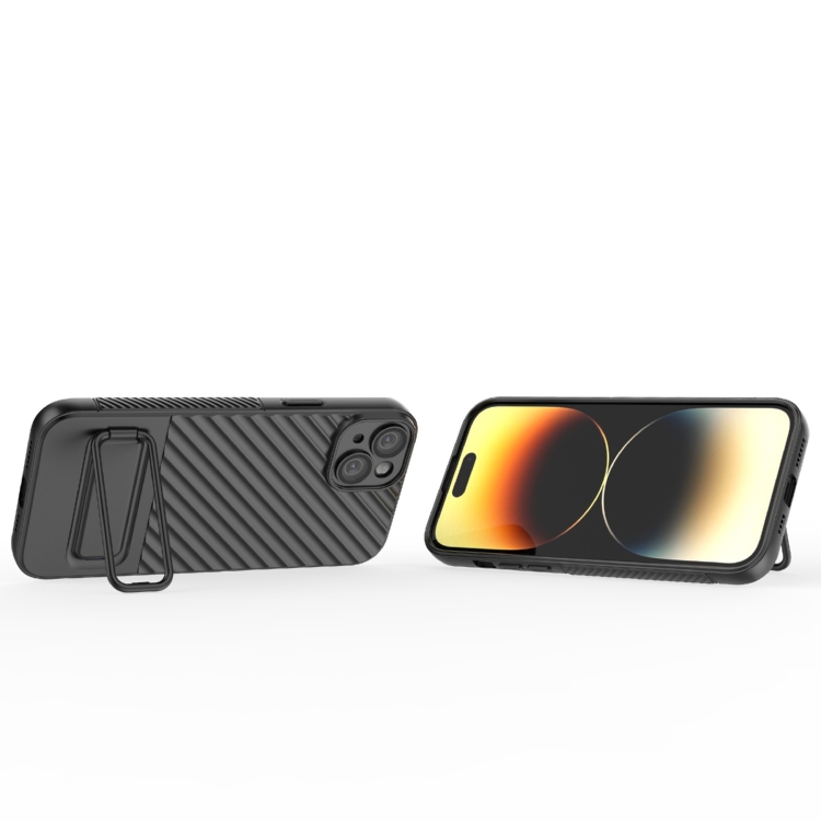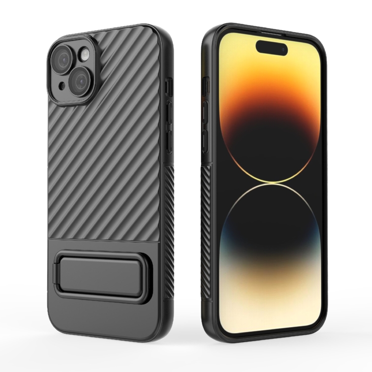 Funda para Teléfono TPU iPhone 15 Plus Textura Ondulada Película para Lentes (Negro)