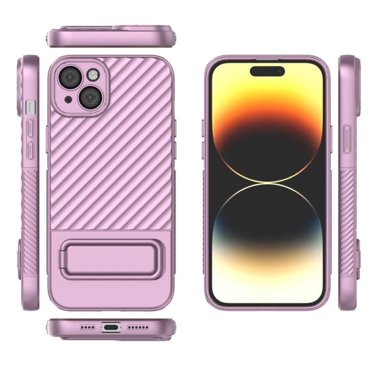 For iPhone 15 Plus Wave Texture TPU Phone Case with Lens Film (Purple)
