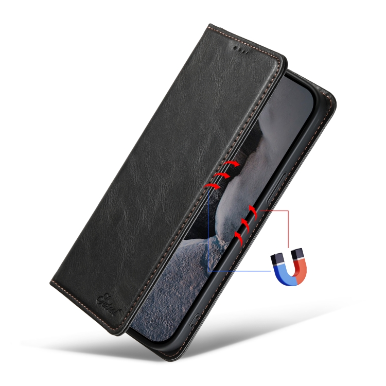 Funda de Cuero Suteni J02 para iPhone 15 Plus con Billetera de Cera de Aceite (Negro)