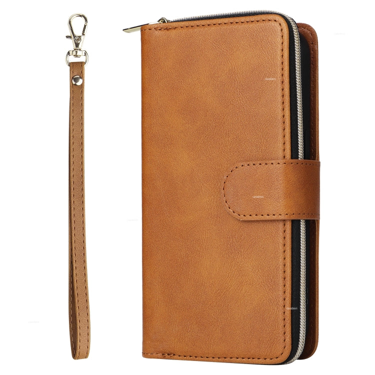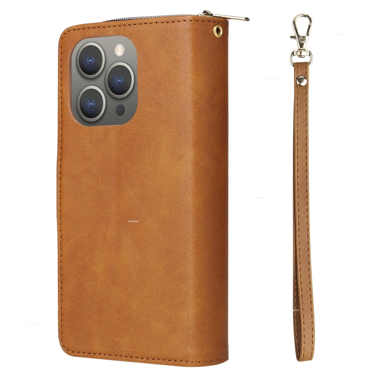 Funda para Teléfono iPhone 15 Pro Bolso Tipo Billetera con 9 Ranuras para Tarjetas y Cremallera (Marrón)