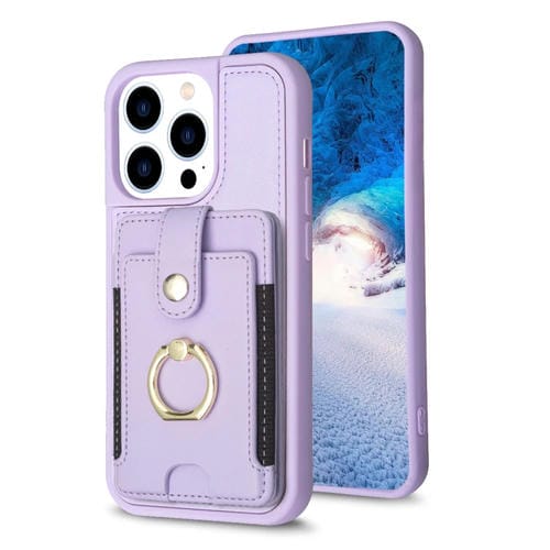Funda para teléfono iPhone 15 Pro Bf27 con soporte para tarjeta y anillo de metal (Púrpura)
