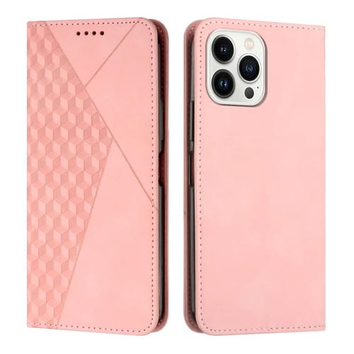 Funda para iPhone 15 Pro Diamond Splicing Skin Feel Magnética de Cuero (Oro Rosa)
