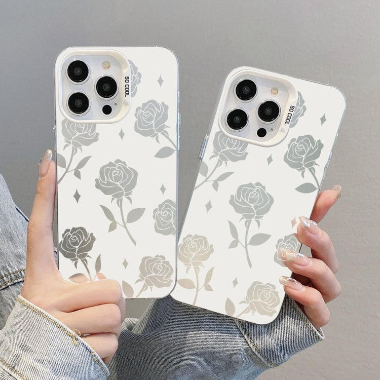 Estuche híbrido para teléfono iPhone 15 Pro TPU con pintura plateada PC (Blanco Rosa)