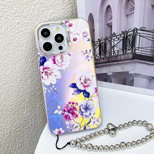 Estuche para Teléfono iPhone 15 Pro Flor Láser Galvanizada con Correa para Muñeca (Peony Ah11)