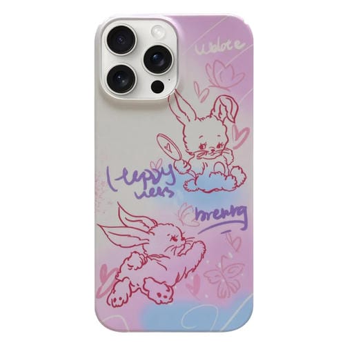 For iPhone 15 Pro Case Painted Pattern PC Phone Case (Pink Line Bunny)