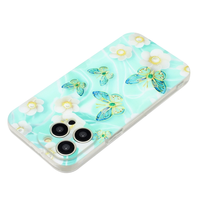 Estuche para Teléfono TPU iPhone 15 Pro con Patrón de Pintura Colorida (Mariposas)