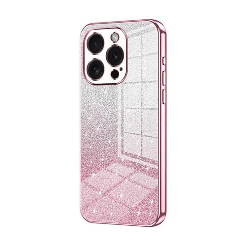 Estuche para Teléfono iPhone 15 Pro Galvanizado con Polvo de Brillo Degradado (Rosa)