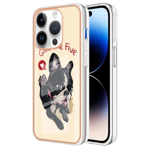 Estuche para Teléfono iPhone 15 Pro Imd Doble Cara Mármol Galvanizado (Perro de la Suerte)